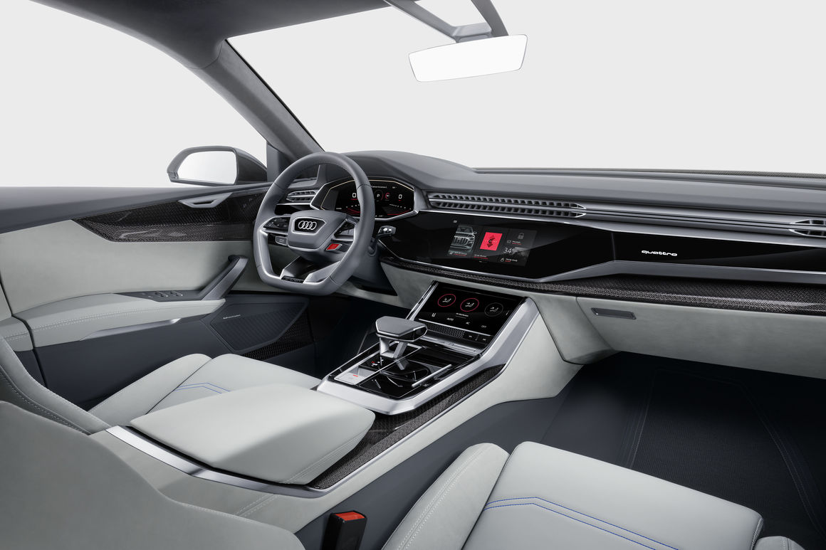 Le constructeur allemand dévoilait déjà au compte goute des photos de la prochaine Audi Q8. Voici donc les premières images du Q8 Concept, ce gros SUV sportif et musclé arrive sur les plates-bandes du BMW X6 et Mercedes-Benz GLE Coupé.