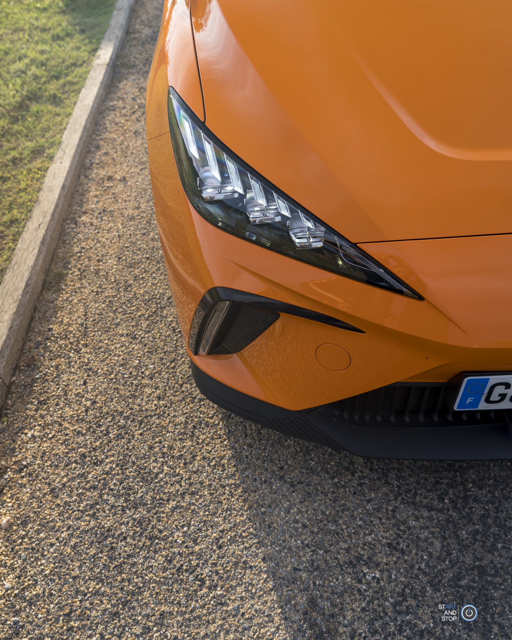 Avec un dessin peu conventionnel, cette MG4 a du caractère à revendre. De face, son capot plongeant et nervuré lui confère une allure agressive. Ajouté à cela des feux avants à LED, une lame inférieure effet fibre de carbone, une calandre à volets actifs (sous la plaque d’immatriculation) et cette couleur Fizzy orange disponible en option à 650 euros. Il est clair que cette configuration Luxury 64 kWh ne passe pas inaperçue.